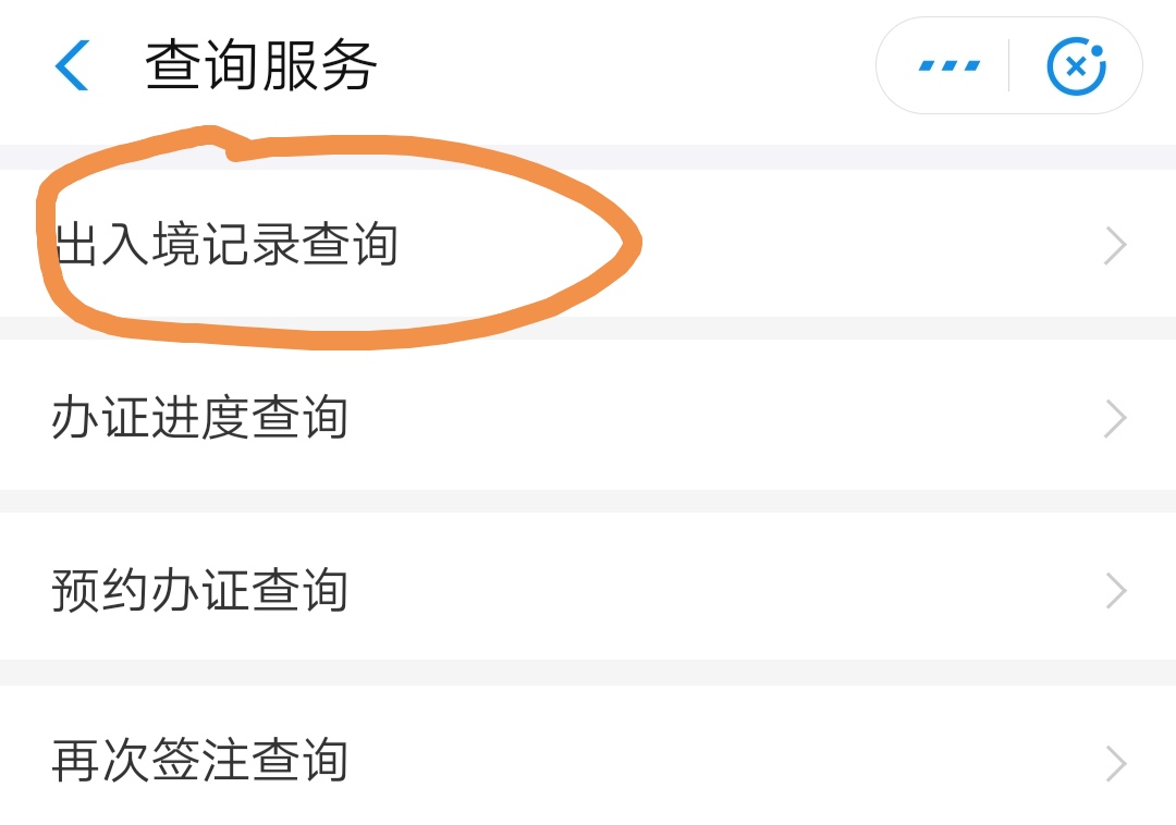 接下来,就可以看到“出入境记录查询”按钮了,如下图,点击一下: